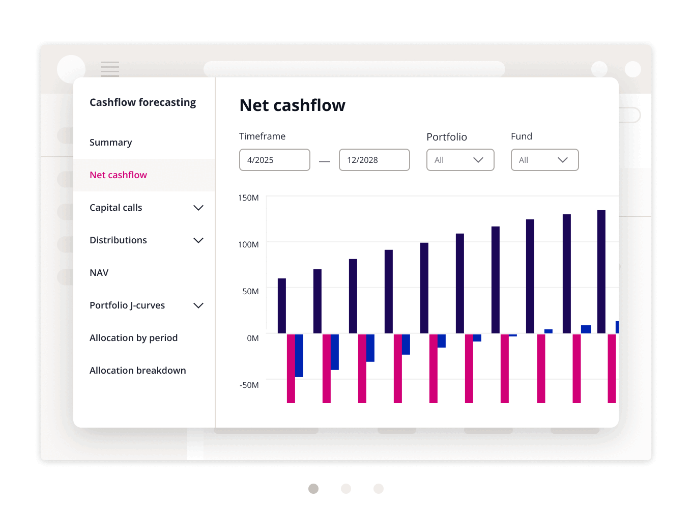 Utilize the Yale model, enhanced with Preqin’s historical cash flow data, to accurately forecast portfolio cash flows. Map your portfolio to the cash flow model to forecast calls and distributions and effectively manage risk within your portfolio. Simultaneously model multiple portfolios to analyze projected cash flows for different strategies, geographies, and funds.
